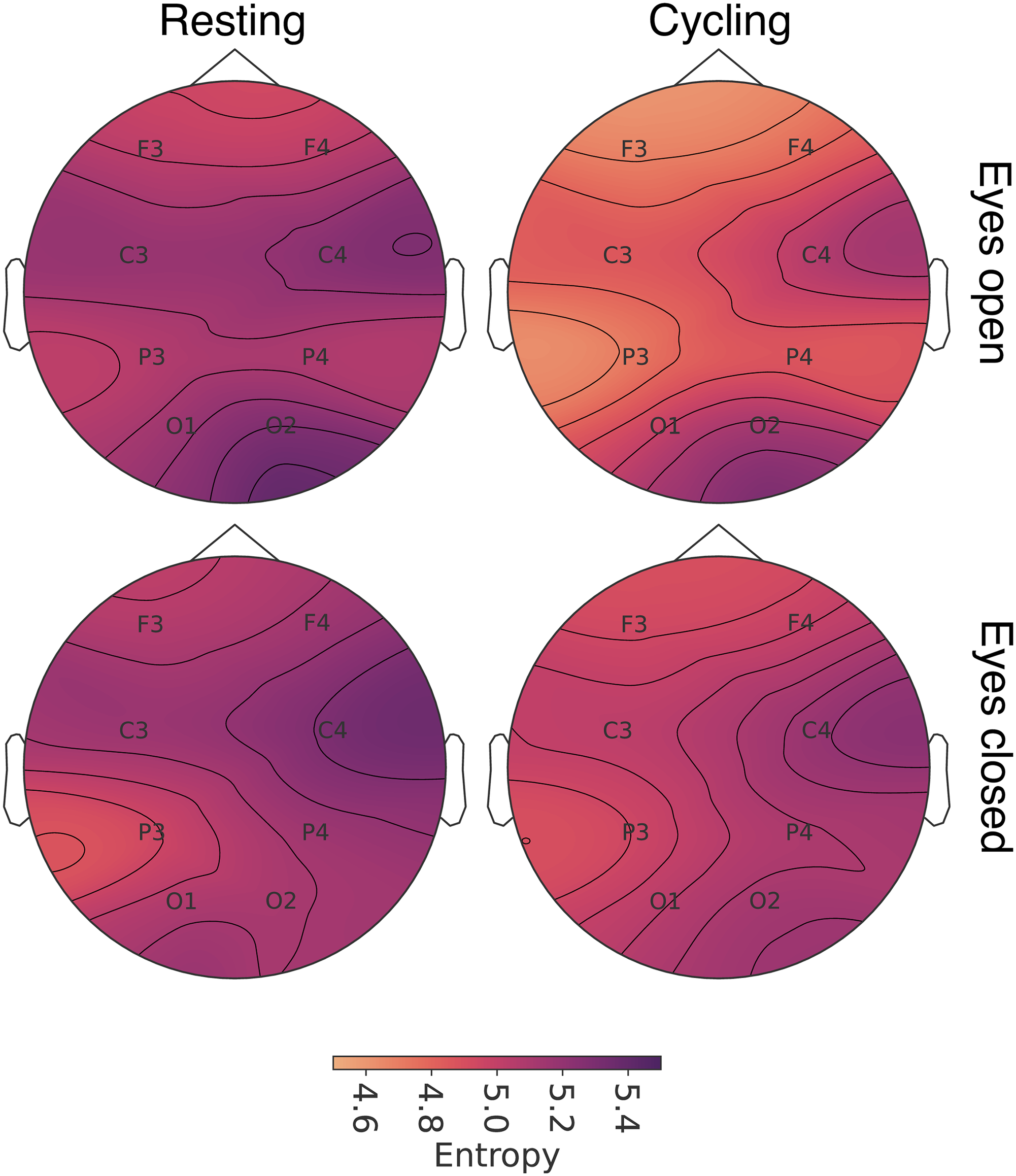 Cycling reduces the entropy of neuronal activity in the human adult cortex